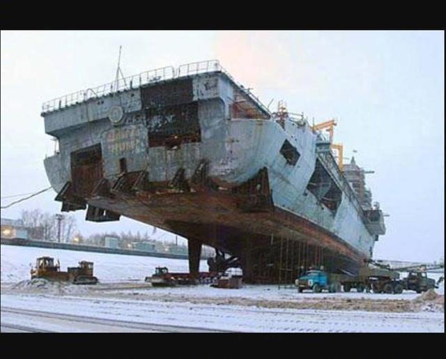 俄罗斯拿印度当冤大头和小白鼠,为印度改装“戈尔什科夫”号航母的时候,没有大型干船坞,于是临时在船厂外港池的空地上,直接在冻土上挖个浅坑,让“戈尔什科夫”号搁浅在岸上,然后在周围搭上脚手架,就直接把“超日王”号航母改装出来了,你们服不服?